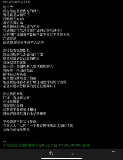 ※ 文章網址: https://pttsite.org.tw/China-Drama/M.1700910653.A.98A