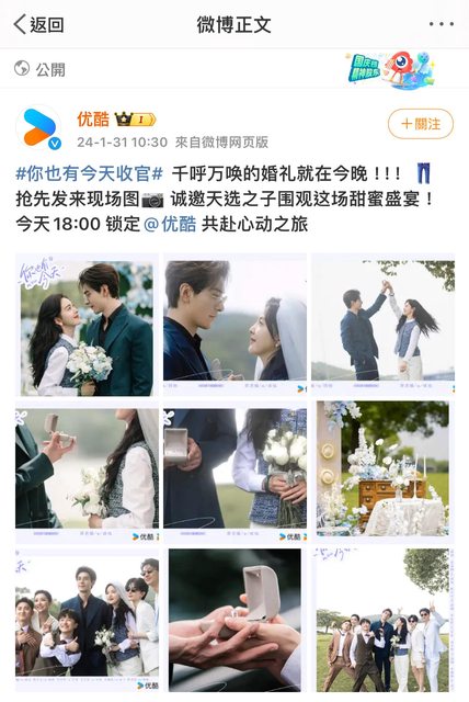 https://weibo.com/7833349223/4996289249674829 (1/31花絮:瑤錢樹求婚現場)