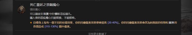 可以鑲嵌至珠寶中的憤怒惡疫鑲孔。鑲入後的惡疫魔心只能替換,不能移除。