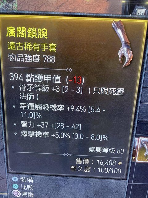 標題[競標] D4 賽季 死靈手套788 骨矛+3幸運/爆率