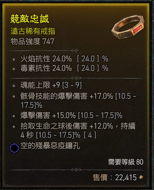 標題[競標] D4 S1 死靈爆傷戒 三屬性近頂