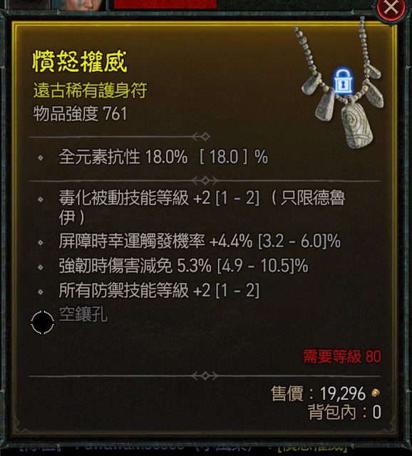 標題[競標] D4 速標 毒化+2/防禦+2/強韌減傷項鍊。