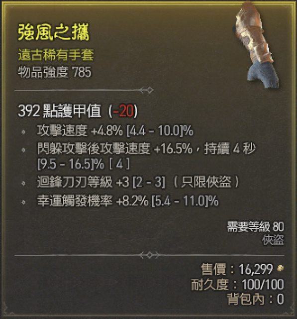 標題[競標] D4 賽季 迴刃3攻速幸運 過渡手套