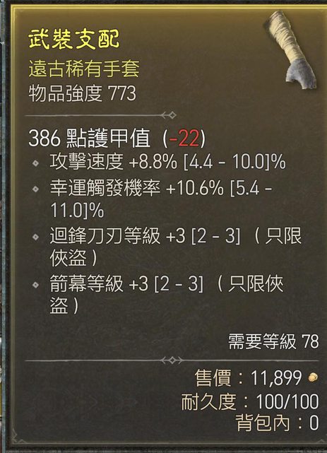 標題[競標] D4 賽季 幸運攻速刀刃手套