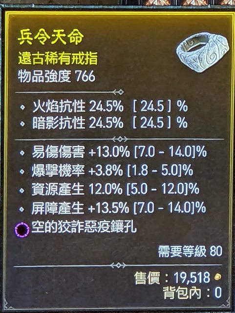 標題[競標] S4賽季 頂易傷爆率資源屏障戒