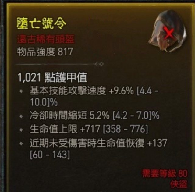 標題[競標] D4 賽季 俠盜頭盔 冷卻 攻速生命頂