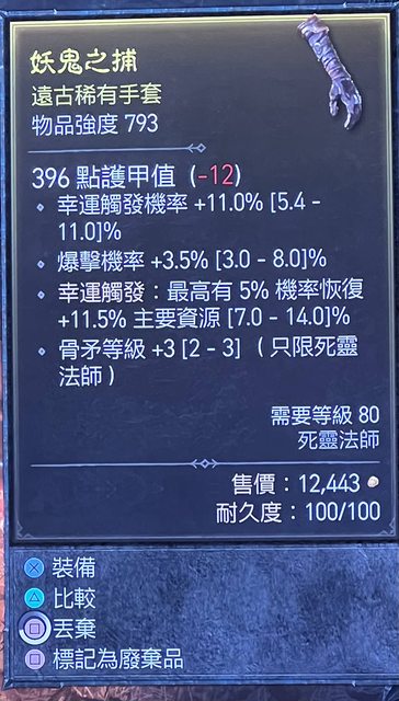 標題[競標] D4賽季 死靈手套 骨茅3、頂幸運