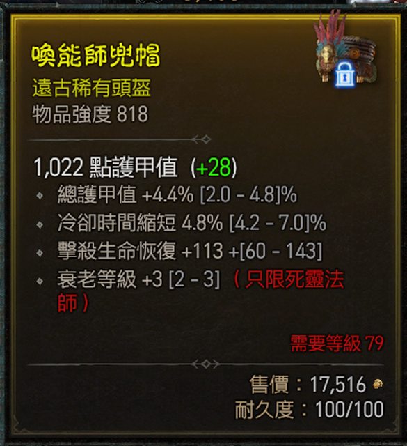 標題[競標] D4 S1 死靈頭 護甲 冷卻 衰老+3