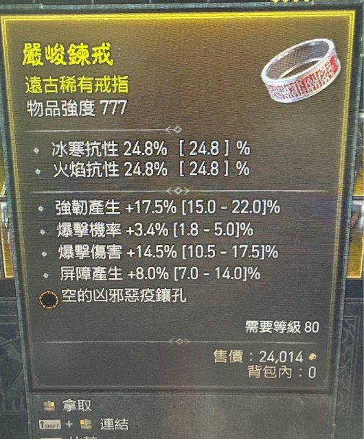 標題[競標] D4賽季 爆率/爆傷/屏障/強韌 戒指 橘