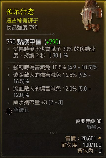 標題[競標] D4 S1 野蠻人 減傷褲 強韌/遠距/流血三頂