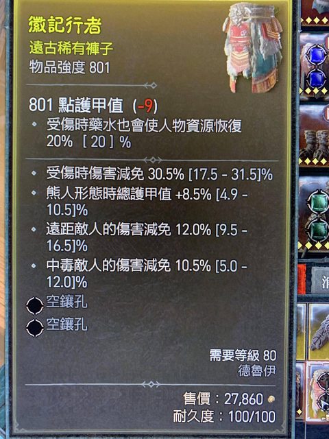 標題[競標] D4賽季 熊德護甲減傷褲 800物品等級