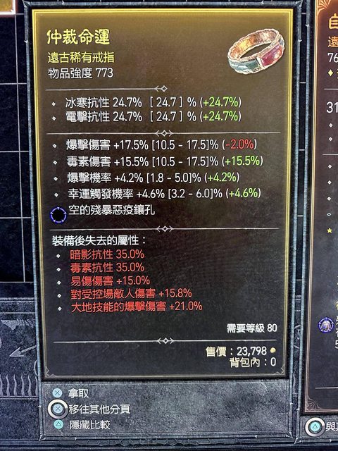 標題[競標] D4戒指 頂爆傷/爆率/幸運