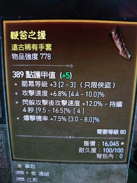 標題[競標] D4 賽季 閃攻速/攻速 近頂爆率手套