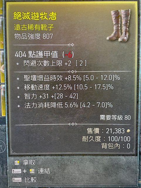 標題[競標] D4 S1 法師鞋 閃避2 跑速 法耗