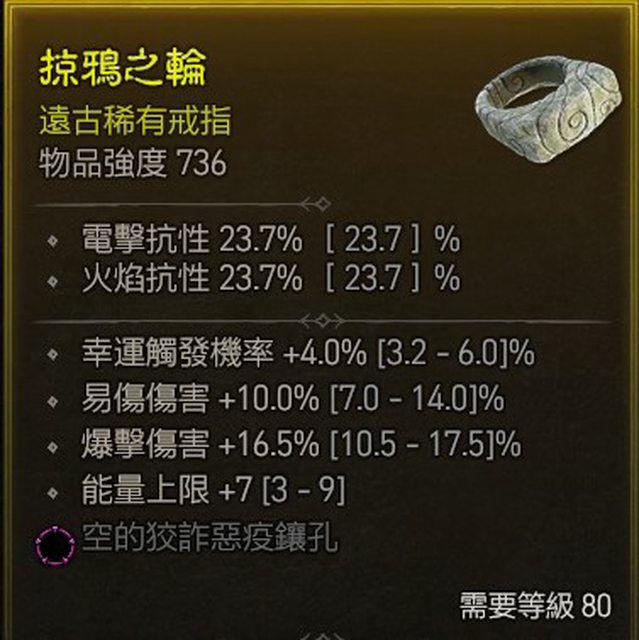 標題[競標] D4 S1 戒指 幸運 易傷 爆傷 能量 紫孔