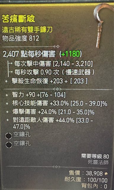 標題[競標] d4賽季 雙手鐮刀 爆傷/智力/核心/遠傷