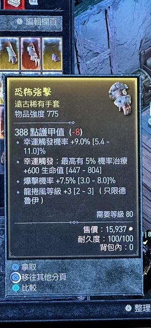 標題[競標] D4S1速標風狼技能爆率幸運手套