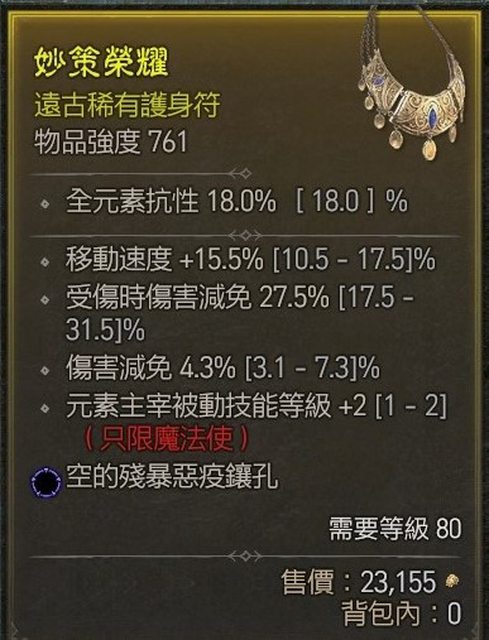 標題[競標] D4 S1 項鍊 移速 受傷減 傷害減