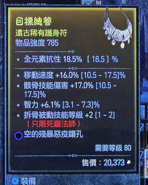 標題[競標] D4S1 拆骨/移速/骸傷/智力 藍孔項鍊