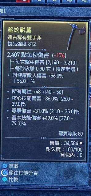 標題[競標] D4 S1雙手斧核心爆傷所有屬性