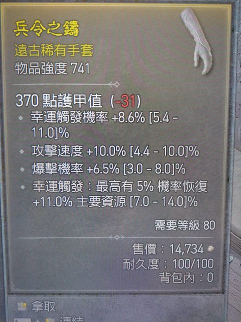 標題[競標] D4 S1 頂攻速、高爆率、高幸運手套