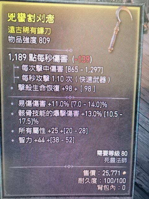 標題[競標] D4 S1 809死靈鐮刀