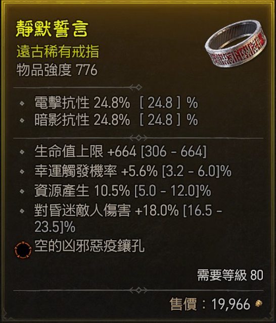 標題[競標] D4 S1 戒指 頂生命 高資源 高幸運 兇邪孔