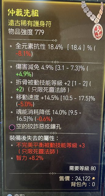 標題[競標] D4 S1 死靈項鍊 跑速 拆骨 減傷 降魂耗