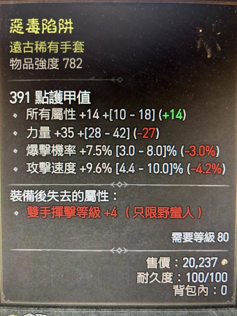 標題[競標] D4 S1 近頂攻速爆率全職業手套