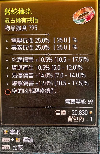 標題[競標] D4S1 頂易傷 資源 爆傷 凶邪戒指
