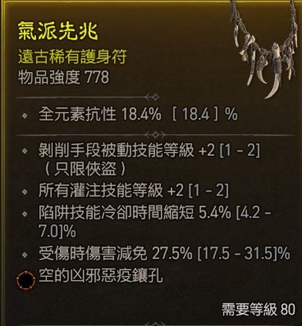 標題[競標] D4 賽季 俠盜項鍊灌注+2剝削+2受傷減免