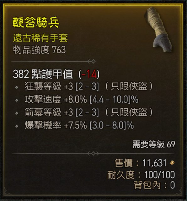標題[競標] 暴力俠盜手套 狂襲+3/箭幕+3/攻速8/暴7.5
