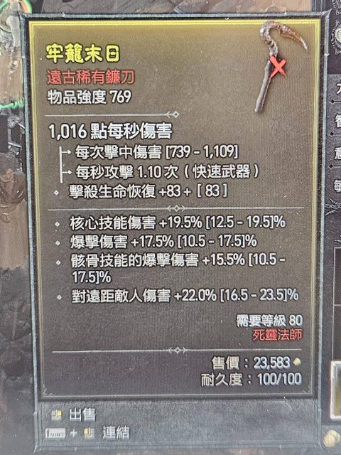 標題[競標] D4 賽季 死靈單手鐮刀