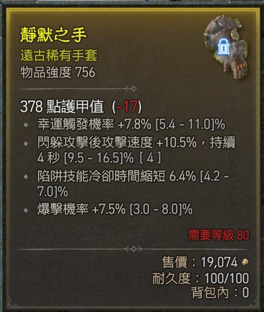 標題[競標] D4 S1 通用閃躲後+攻速手套 炸盾用