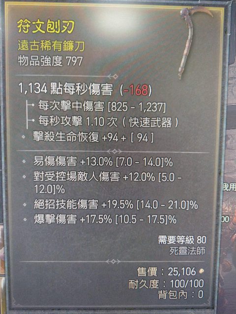 標題[競標] D4 S1 死靈單手鐮刀,近頂易傷、頂爆傷