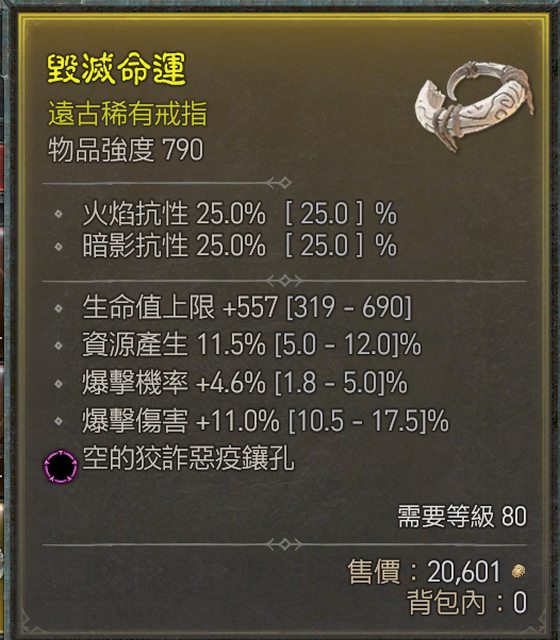 標題[競標] D4 S1 戒指/爆率/爆傷/資源/生命