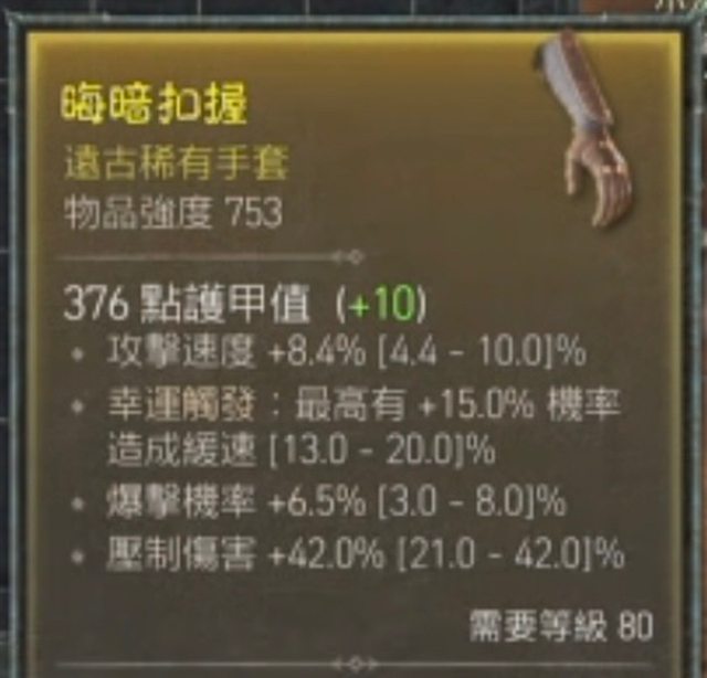 標題[競標] D4 S1 手套 頂壓制 攻速 爆率