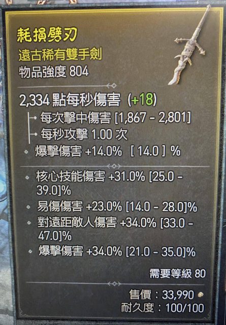 標題[競標] D4S1 804雙手劍 核心 爆傷 易傷