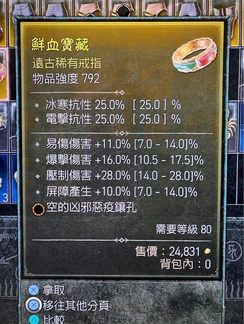 標題[競標] D4 S1 爆傷/易傷/屏障/壓制 戒指