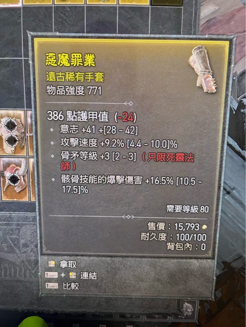 標題[競標] D4s1 死靈手 骨矛攻速骸骨爆