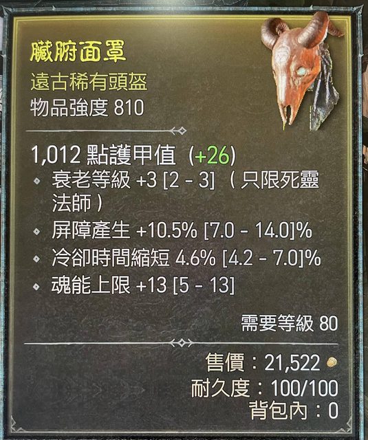 標題[競標] D4 S1 頭盔 頂魂能 衰老 冷卻 屏障