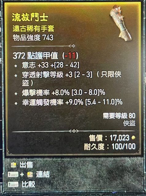 物 品:遠程俠盜手套 頂爆/高幸運/穿透射擊3