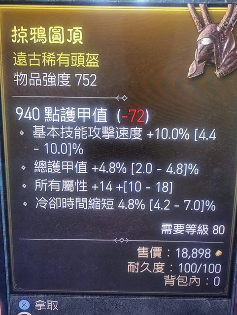 總護甲4.8% / 攻速10/ 全屬14 /冷卻4.8