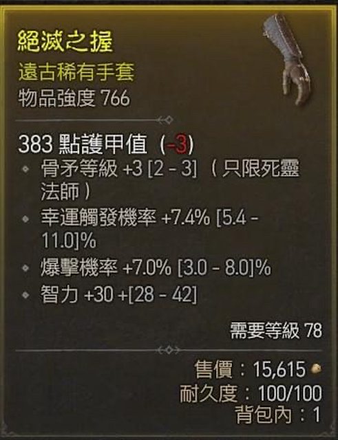 標題[競標] D4 S1 四條 骨矛 爆率 幸運觸發 智力