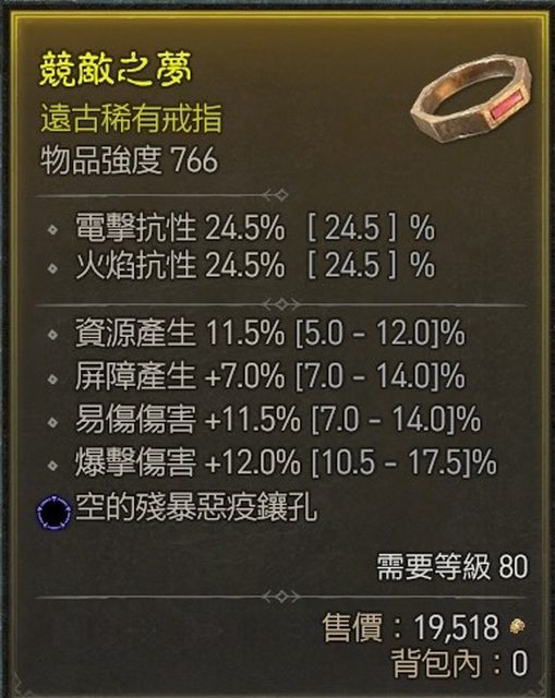 物 品:遠古戒指 資源11.5% 屏障7% 易傷11.5% 爆傷12%