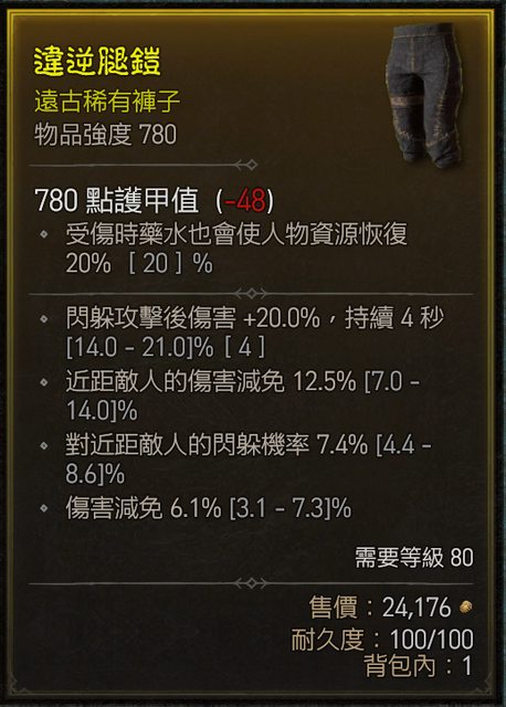 看完大大的炸盾指南後在倉庫翻到件中3的褲子 數值中上 各位熊大參考一下~~