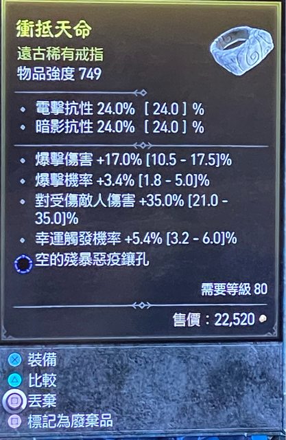 標題[競標] D4 S1 戒指 爆率 近頂爆傷幸運 藍孔