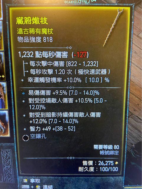 815+單手魔杖:易傷、智力、暗影傷、全屬、持續傷