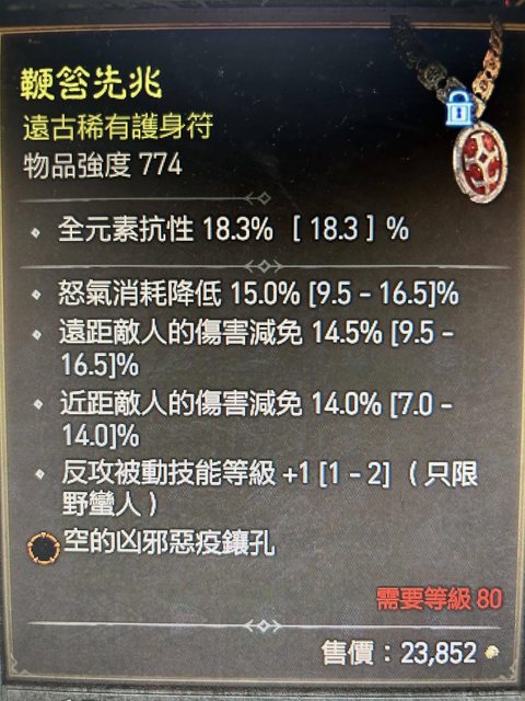 標題[競標] D4 S1 野蠻人高減傷高降怒項鍊