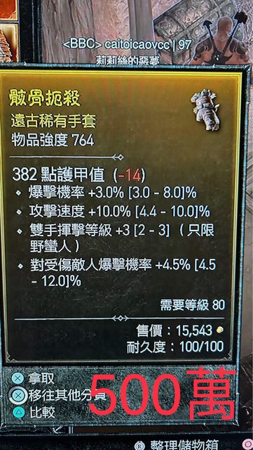 賣賽季野蠻武器、戒指、護身符 暗黑幣標價皆附在圖上